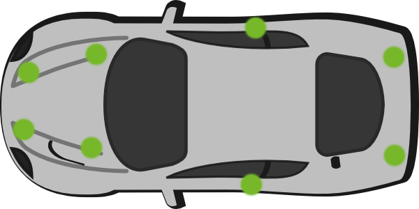 Här får du hjälp att hitta färgkoden på Fiat. Gröna prickarna på bilden markerar var du oftast hittar färgkoden på en Fiat. Du kan sedan beställa bättringsfärg till din bil.