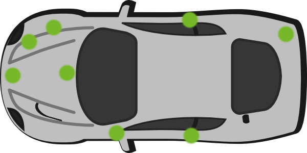 Här får du hjälp att hitta färgkoden på Ford. Gröna prickarna på bilden markerar var du oftast hittar färgkoden på en Ford. Du kan sedan beställa bättringsfärg till din bil.