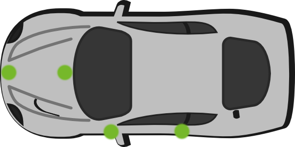Här får du hjälp att hitta färgkoden på Hyundai. Gröna prickarna på bilden markerar var du oftast hittar färgkoden på en Hyundai. Du kan sedan beställa bättringsfärg till din bil.