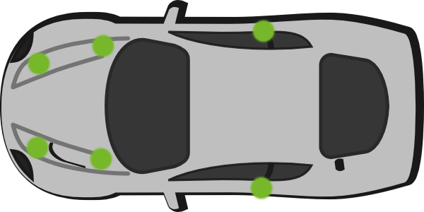 Här får du hjälp att hitta färgkoden på Lexus. Gröna prickarna på bilden markerar var du oftast hittar färgkoden på en Lexus. Du kan sedan beställa bättringsfärg till din bil.
