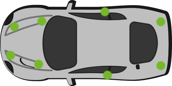 Här får du hjälp att hitta färgkoden på Mitsubishi. Gröna prickarna på bilden markerar var du oftast hittar färgkoden på en Mitsubishi. Du kan sedan beställa bättringsfärg till din bil.
