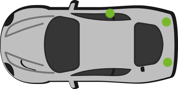 Här får du hjälp att hitta färgkoden på Smart. Gröna prickarna på bilden markerar var du oftast hittar färgkoden på en Smart. Du kan sedan beställa bättringsfärg till din bil.
